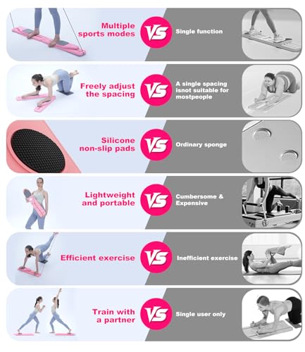 You can combine two separate Pilates reformers pieces to form a single straight line – unlocking a brand new fitness mode: simulated ski machine. The Pilates reformer set can comprehensively exercise the muscles of the back, abdomen, hips, arms and legs, pelvic floor muscle and enhance core strength. The Pilate board gradually adjusts the resistance levels to achieve different fitness goals in a step-by-step manner