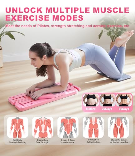 Pilates Board, 12 in 1 Mini Plilates Reformer Set, Multifuncional Portable Pilates Reformers Board for Home Workout, Free Combination 100+ Exercise Mode