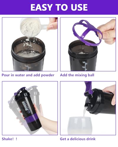 CAPACITY & COMPARTMENTS – Includes 22oz capacity(measurement markings to 16 oz) shaker bottle and 3 extra compartments. Nice ideas for take protein powder, vitamins, pills. All in the shake bottle perfect for post workout, pre workout
