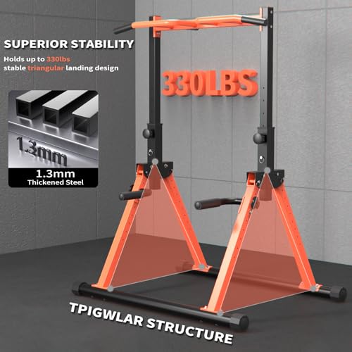 Outdoor Basic Power Tower, Pull Up Bar and Dip Station for Home Gym, 1600LBS Weight Capacity, Adjustable Height, Heavy Duty Steel Frame for Calisthenics, Strength Training Fitness Equipment