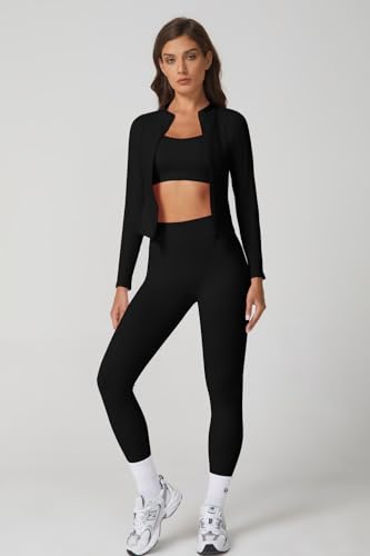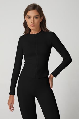 YEOREO SoftHue Women’s Athletic Jacket Cropped Long Sleeve Workout Top Zip Up Gym Compression Shirts with Thumb Holes