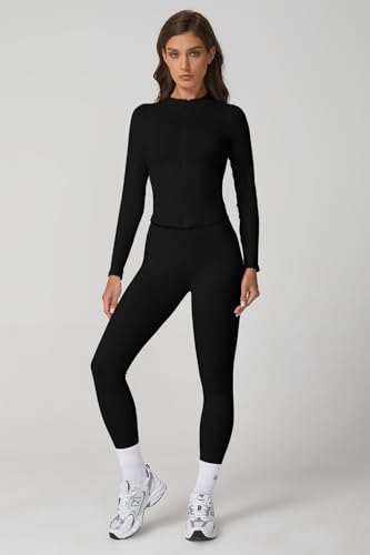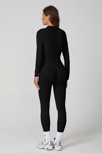 QINSEN Two Piece Workout Sets For Women Long Sleeve Athletic Jacket Matching High Waist Booty Lifting Pants Yoga Gym Outfits