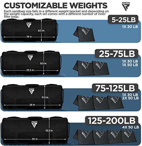 RDX Sandbag for Fitness Weights Training, Unfilled Power Bags with Handles, 5-200 LBs Adjustable Weighted Slam Bag for Strength Powerlifting Running Heavy Workout Home Gym Exercise, Sold AS UNFILLED