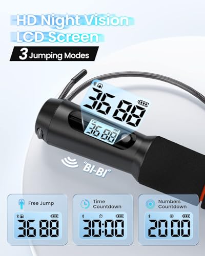 Clear LCD display & comfortable foam handle: Our jump ropes for fitness for men are equipped with a lightweight foam handle that is made from friendly environmental ABS with EVA material. The foam handles give you comfortable touch and non-slip when exercising, Also, the main handle is embedded with an HD LCD display that provides users a clear view of the rope skipping data, like skip time or total skips.
