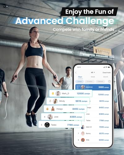 RENPHO Smart Jump Rope – APP Data Storage & Tracking & Analysis, Tangle-Free Jumping Rope for Men, Women, Skipping Rope with Counter, Adjustable workout Jump Ropes for Crossfit, Gym, MMA