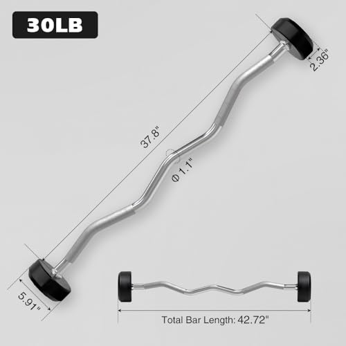 VERSATILE & DURABLE: This Rubber Coated Fixed Weight Curved Barbell is available in various weight options, making it suitable for all types of barbells exercises. Choose from a variety of weights to suit your fitness level and workout goals. This Fixed Curl Barbell empowers personalized workouts, catering to individuals of all levels, from novices to seasoned weightlifters.