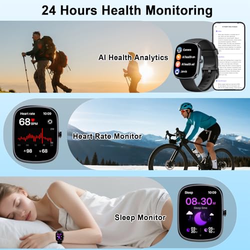 Smart watch, Bluetooth calling and text, health, fitness and slBuilt-in ChatGPT AI and Voice Control Assistant: This smart watch is equipped with ChatGPT AI, allowing you to access smart features directly from your wrist. Whether you need instant answers, translation assistance, or emotional and wellness support, ChatGPT is ready to assist—all via voice or text input. Moreover, it also features a dedicated voice assistant. Simply speak to the watches for men to ask questions, control music playback, check the weather, or set alarms and timers. eep trackers, multiple exercise modes