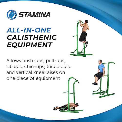 Elevate your fitness routine with the Stamina Outdoor Power Tower, a versatile and durable strength training station designed for a comprehensive workout in the comfort of your own backyard. Crafted with heavy-gauge steel and stainless steel hardware, this power tower is built to withstand the elements, allowing you to train year-round in any weather. Unlock a world of exercise possibilities with this multi-use fitness station. Perform a variety of upper body workouts, including pull-ups, push-ups, tricep dips, sit-ups, and vertical knee raises, all while targeting your arms, shoulders, back, chest, and abs. Tailor your routine to your fitness level, whether you’re toning, building muscle, or slimming down, by utilizing the multiple grip options. The sleek, easy-to-assemble design requires minimal maintenance, giving you more time to focus on achieving your fitness goals in the privacy of your own backyard. With its weather-resistant paint and durable construction, the Stamina Outdoor Power Tower is built to withstand the elements, allowing you to work out at any time, in any season. Elevate your home gym with this versatile and reliable power tower, and unlock a full-body workout that will help you reach your fitness aspirations. Experience the convenience and effectiveness of the Stamina Outdoor Power Tower, your gateway to a stronger, healthier you.