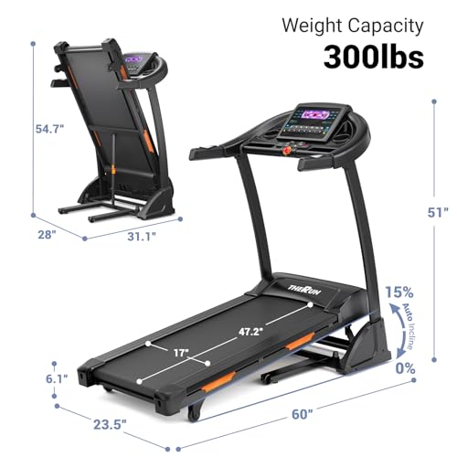 THERUN Incline Treadmill for Running and Walking, 300 lbs Weight Capacity Folding Treadmill with 0-15% Auto Incline, Wide Belt, 3.5HP, App, Heart Rate