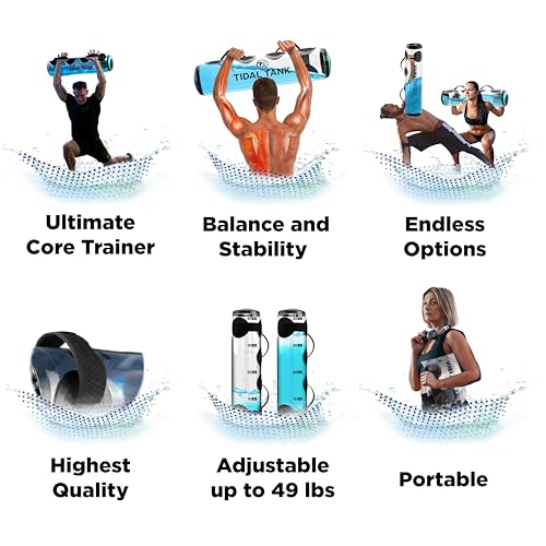 ADJUSTABLE RESISTANCE FOR ALL FITNESS LEVELS – With a capacity of up to 49 pounds of water, the Tidal Tank water weights cater to diverse training needs. However, the focus isn’t solely on weight; even with just 20 pounds, users experience significant muscle activation and soreness. Our aqua bag includes a brochure that features a water level indicator, simplifying weight adjustments and maximizing workout efficiency.