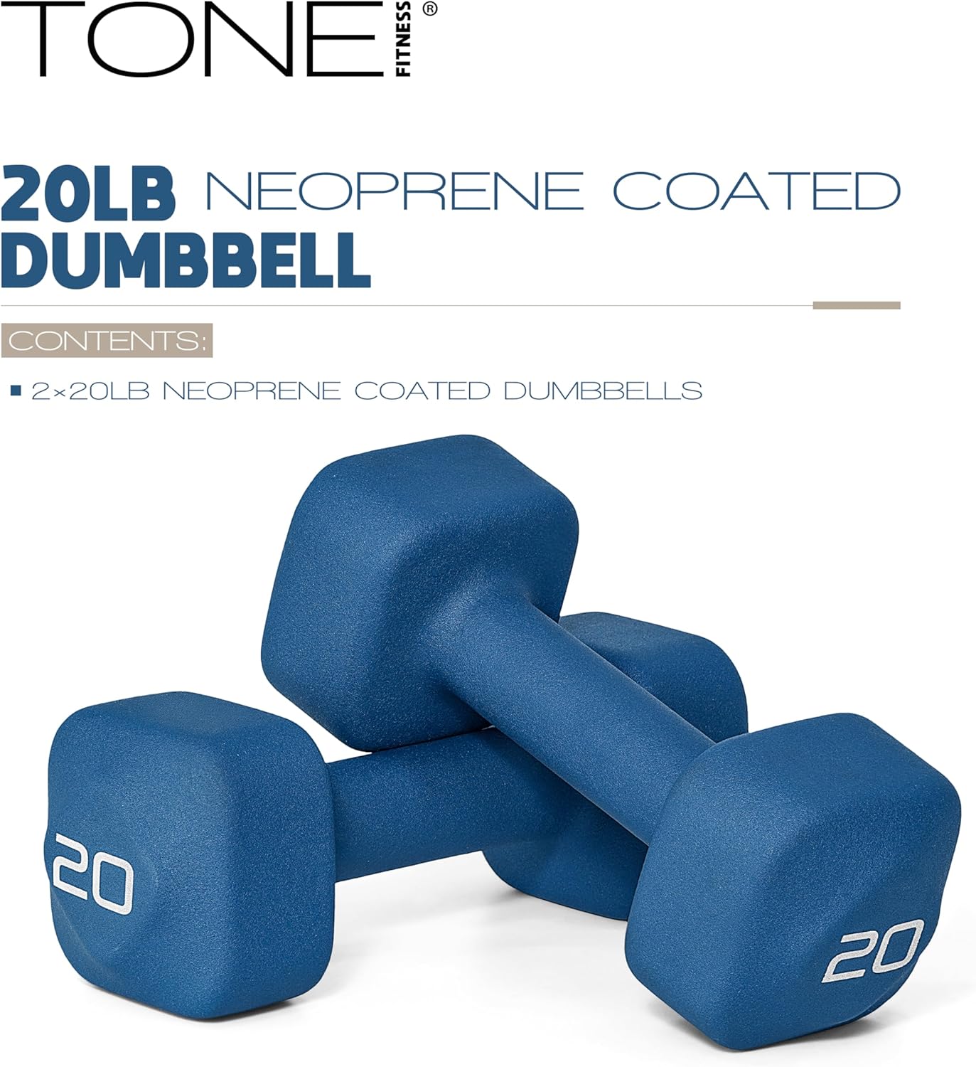 Tone Fitness Neoprene Dumbbell Weight Pairs with Anti-Roll Square Head | Multiple Options