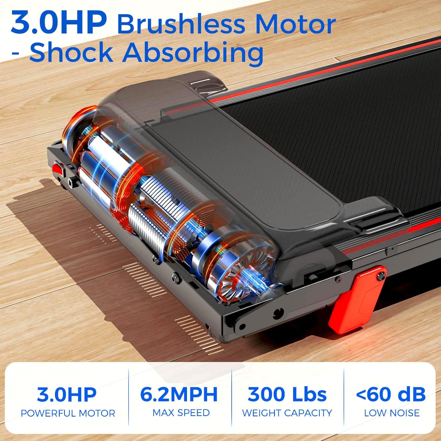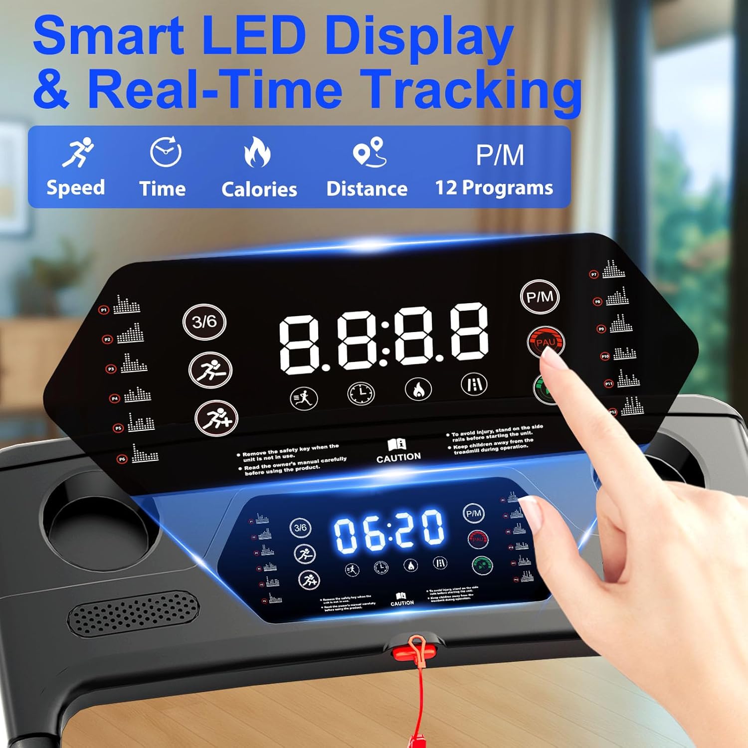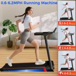 【0.6-6.2mph Running Jogging Machine】: Our treadmill offers a speed range from 0.6 to 6.2mph, catering to your fitness needs. Seamlessly transition between running, walking, incline training and desk-friendly mode.