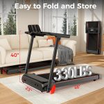 【Compact Storage Design】: Our portable treadmill is designed to be compact and lightweight (Size:48*23*40″, 49lbs), making it easy to store in small spaces such as apartments or dorm rooms. Treadmill also with wheels for easy moving,and store,When folded it has a total dimension of just 48*23*5 inches suitable for use in small spaces.
