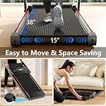 【5-Layer Shock Absorption System Walking Pad】: Engineered for compact home fitness, this portable small treadmill delivers 38″x15″ anti-slip running space with 5 reinforced layers, 10 silicone shock absorbers, and dual impact pads. Reduces joint impact by 40%, ensuring silent, stable strides while safeguarding knees and muscles.