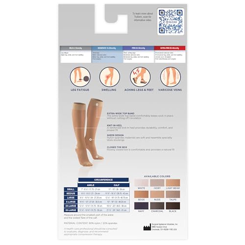 Truform Sheer Compression Stockings, 15-20 mmHg, Women’s Knee High Length, 20 Denier, Nude, Medium