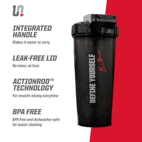 Undefined Nutrition Define Yourself Protein Shaker Bottle – 28 oz Shaker (800 ml) by Brian Shaw – Gym Cup with Superior Mixing and ActionRod Technology – Lightweight, Portable and Easy to Carry