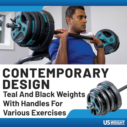 US Weight Barbell Weight Set for Home Gym with 55” padded Bar – Adjustable Weights for Exercise, Lifting, and to Build Muscle