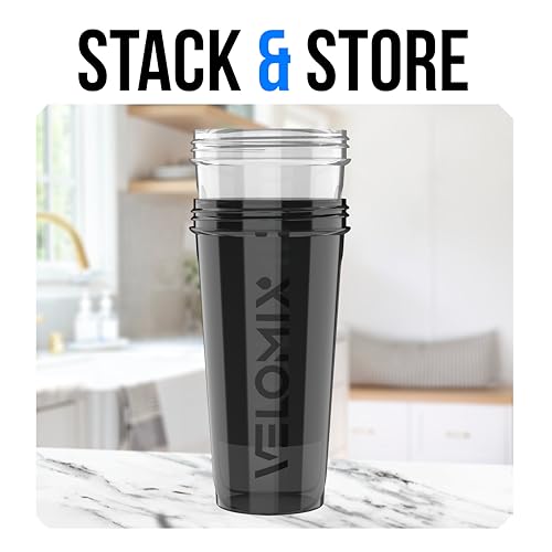 VELOMIX -2 Pack- 28 oz Protein Shaker Bottles for Protein Mixes – 2x Wire Whisk | Leak Proof Shaker Cups for Protein Shakes | Protein Shaker Bottle Pack (Black/Transparent)