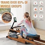[Solid and Quiet Design ] The rowing machine is made of durable FSC-certified solid wood and a sturdy steel frame that provides superior durability and corrosion resistance. Multiple support points provide stability and prevent deformation, and superior materials absorb sound and vibration to keep things smooth and quiet even during intense workouts. Accommodating users up to 77 inches tall and 350 lbs max load.