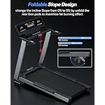 Adjustable LED Display and APP: The Large LED display provides clear readouts of your speed, time, distance, calories, heart rate and step. You also can connect with the smart APP via Bluetooth, to control treadmill, track progress, access different training programs for enhancing your exercise.