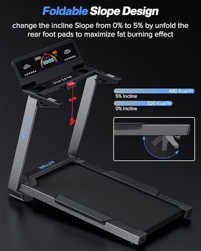 0%~5% Incline Treadmill: WELLFIT heavy duty treadmill can increase calorie burn by adjusting the incline slope manually. The effects of weight loss are 1.5X that of running on a 0% incline treadmill.