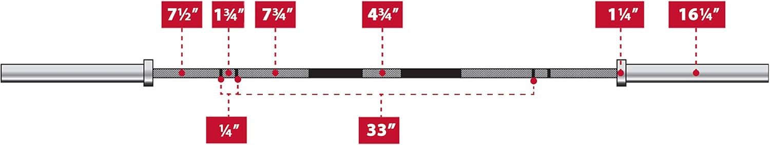 Grip 28mm Length 86.5″ Knurling Medium Center Knurling No Weight Capacity 1500 lbs Barbell Type Multi-purpose Use Type Olympic & Powerlifting