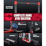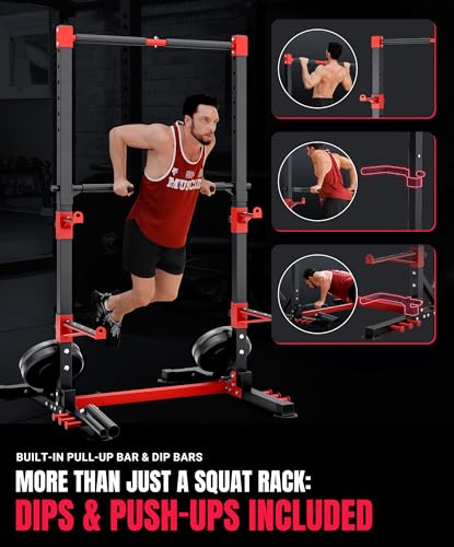 【Multi-Functional Squat Stand with Pull-Up & Dip Bars】 Includes a pull-up bar and dip handles, enabling a full-body workout with pull-ups, dips, push-ups, and squats in one squat rack for home gym setup