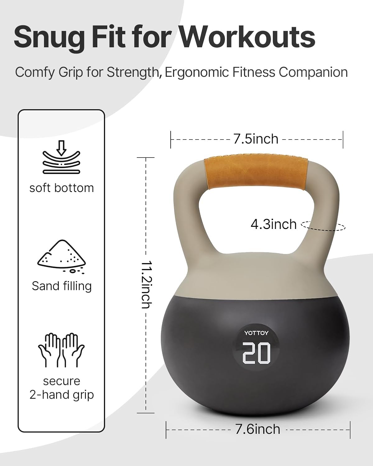 2. Soft-Shell Design – Safer for Floors & Body Unlike traditional iron kettlebells, this soft kettlebell won’t damage your floors or bruise your legs if dropped. Ideal for home workouts, small spaces, and beginner-friendly training
