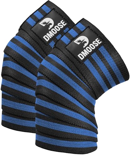 DMoose Fitness Knee Wraps for Weightlifting (Pair) – 78” Gym Brace Straps for Joint Stability & Pain Relief – Perfect for Squats & Working Out – USPA Approved Knee Wrap Supports for Men and Women